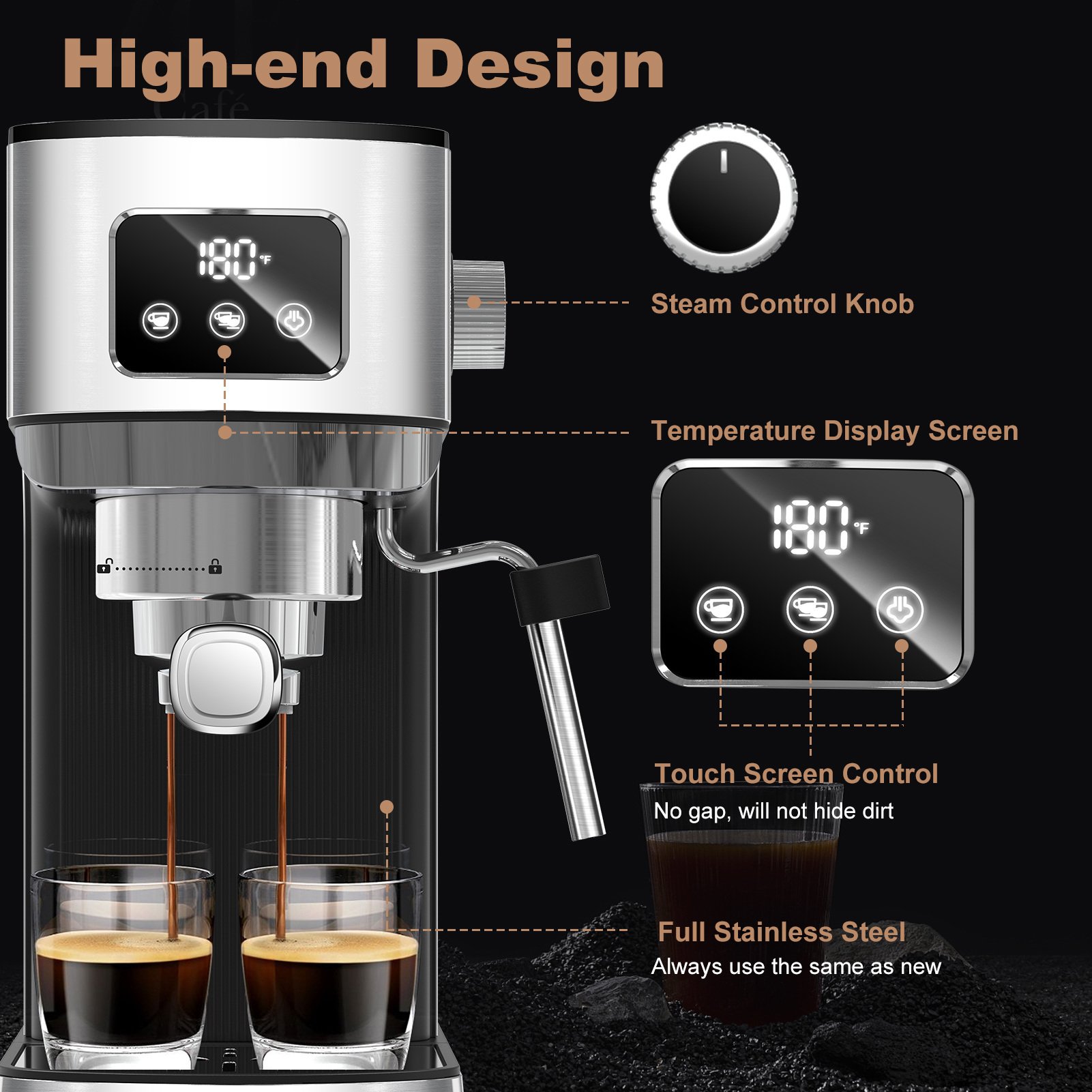 1.Enhanced 20Bar Extraction Power - Experience the rich, aromatic essence of espresso with our advanced 20-bar high-pressure extraction system. Unlock the full potential of your coffee beans for a truly exceptional espresso experience.