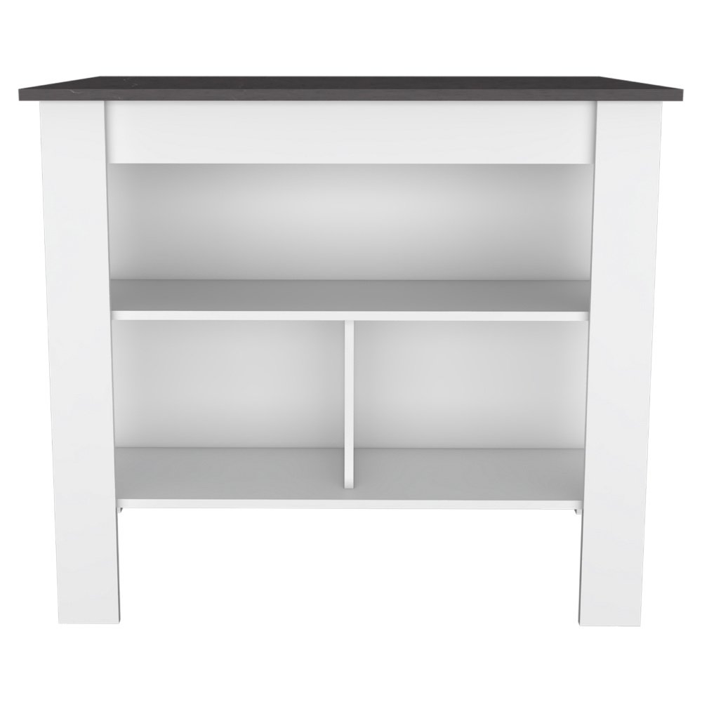 The kitchen island includes three low shelves with ample storage capacity, making it perfect for holding all of your kitchen essentials
