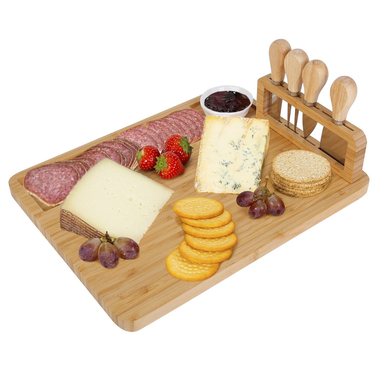 Home > Bamboo Charcuterie Cheese Board Platter Board Serving Tray with Cutlery Set for Wedding Birthdays Christmas