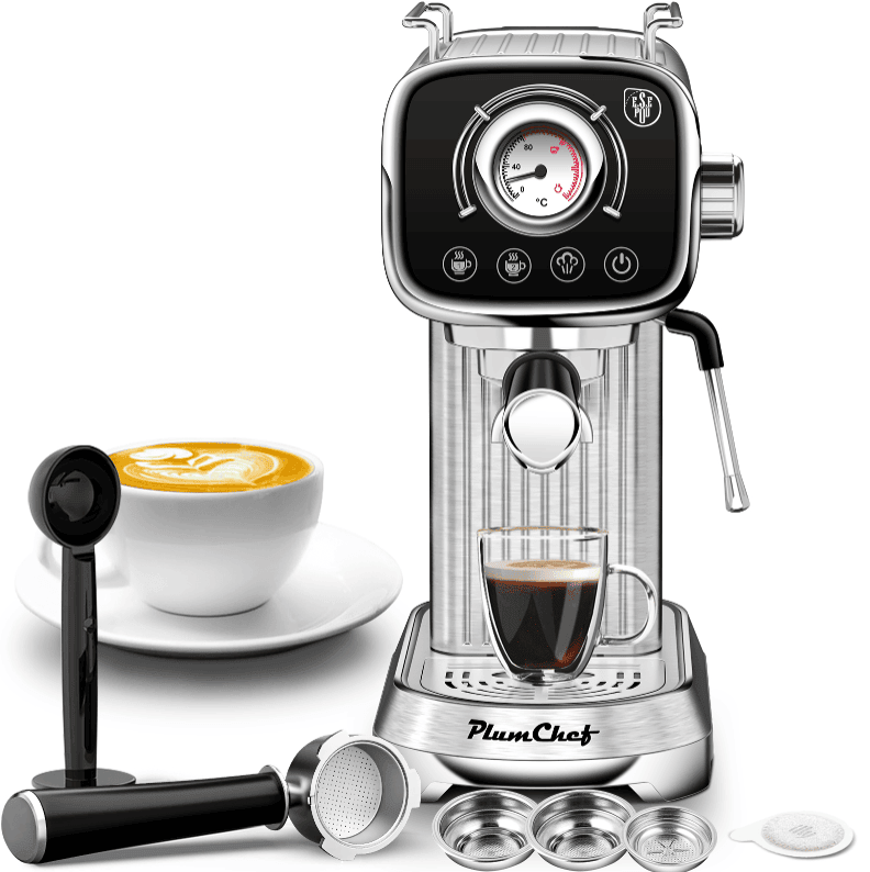 SKU: W1002P292362 20Bar Compact Italian Coffee Maker with Milk Frother, Dual Lens Option, 1350W Semi-Automatic Coffee Machine, with 1.5L Water Tank ESE Pod Compatibility, Temperature Display, Cappuccino, Detachable Tank with Latte and Macchiato Capsule Filters and Foam Steam Wand Single and Double Shot Pressure Display, Cappuccino, Detachable Tank with Latte and Macchiato Electronic Buttons, Powder Hammer 51 mm, touch-sensitive, steam-driven, with frother, perfect for home coffee