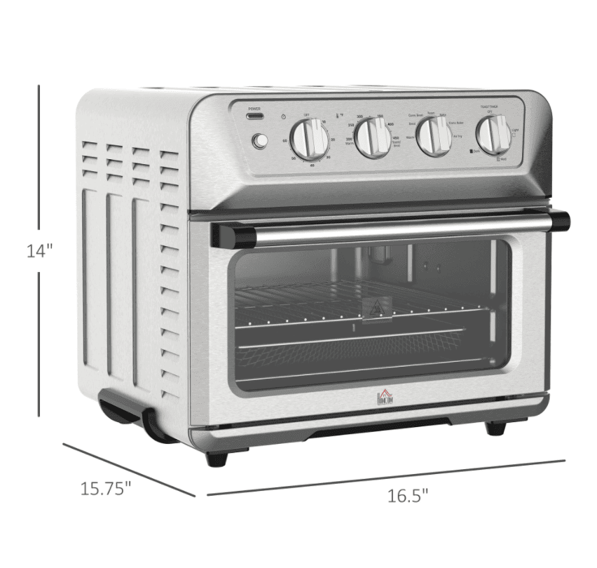 PLENTY OF ROOM TO COOK: This air fryer toaster has a 21 Qt capacity with two racks that allow four slices of bread or 9" pizza and won' t take up much space on your counter.