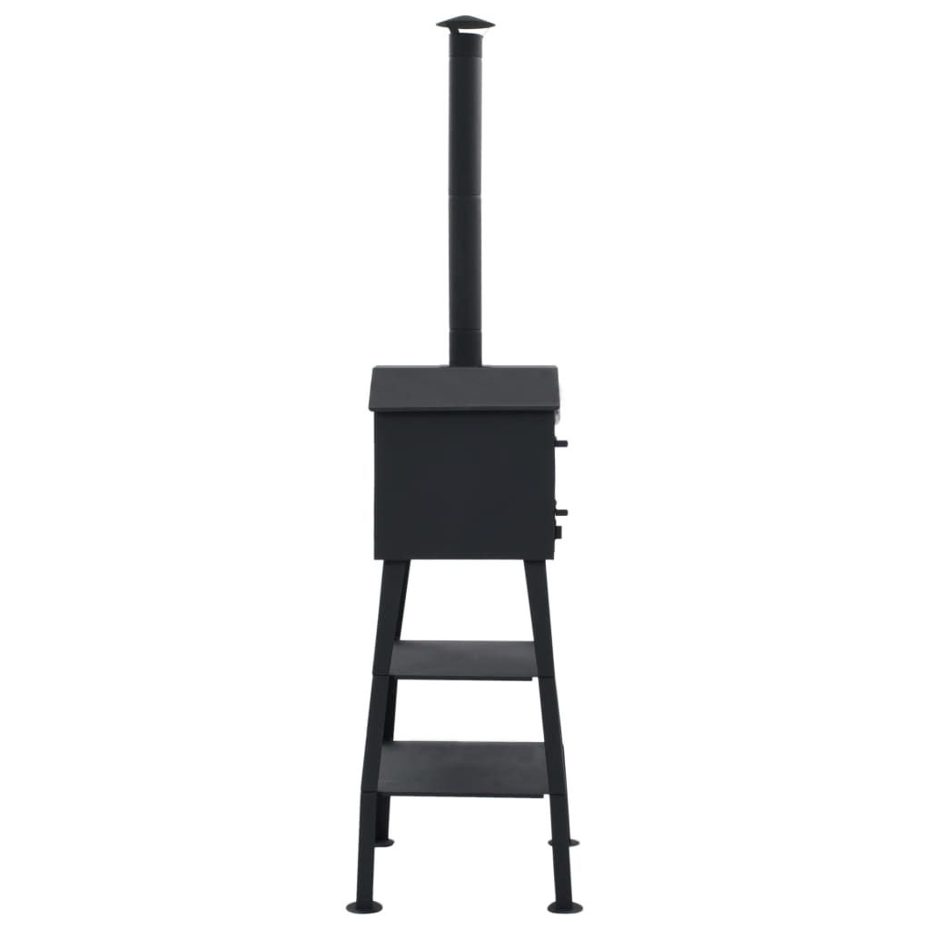 This standalone oven is suitable for all types of charcoal. The fire tray is removable, allowing for quick and easy cleaning. The top compartment is used for baking and its base is made of two refractory ('fireclay') bricks, which distribute the heat evenly within the oven and can withstand temperatures of up to 2372 °F. The bricks also ensure that your food will not be soiled by flying ash or dust from the fire. The two shelves provided underneath the oven are practical to store oven gloves or other supplies. This oven also comes with a built-in thermometer.