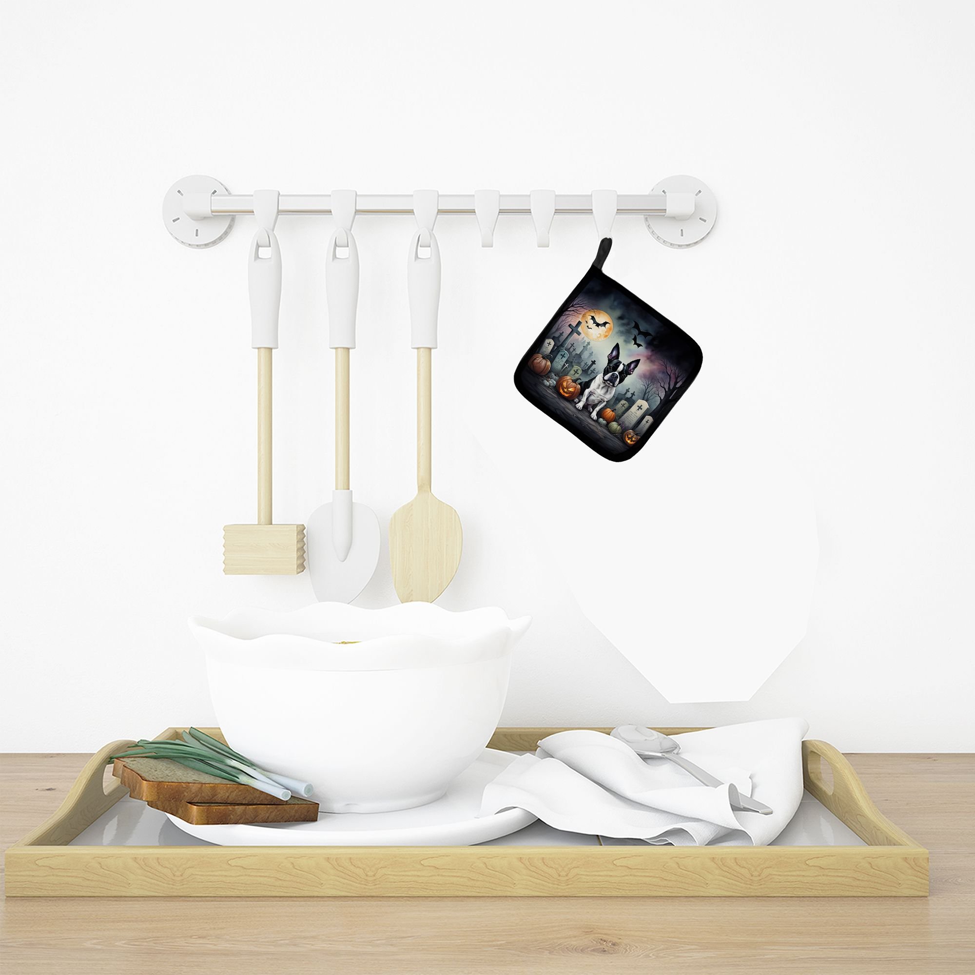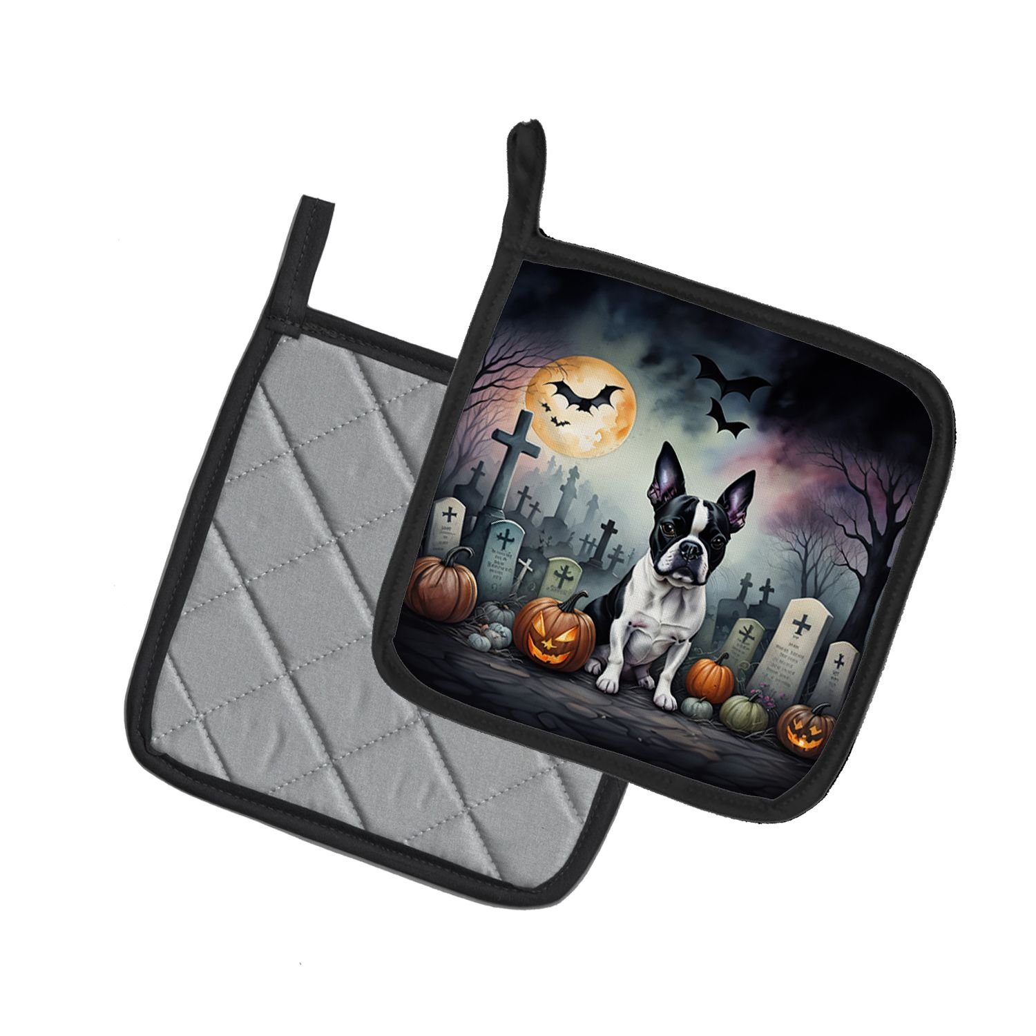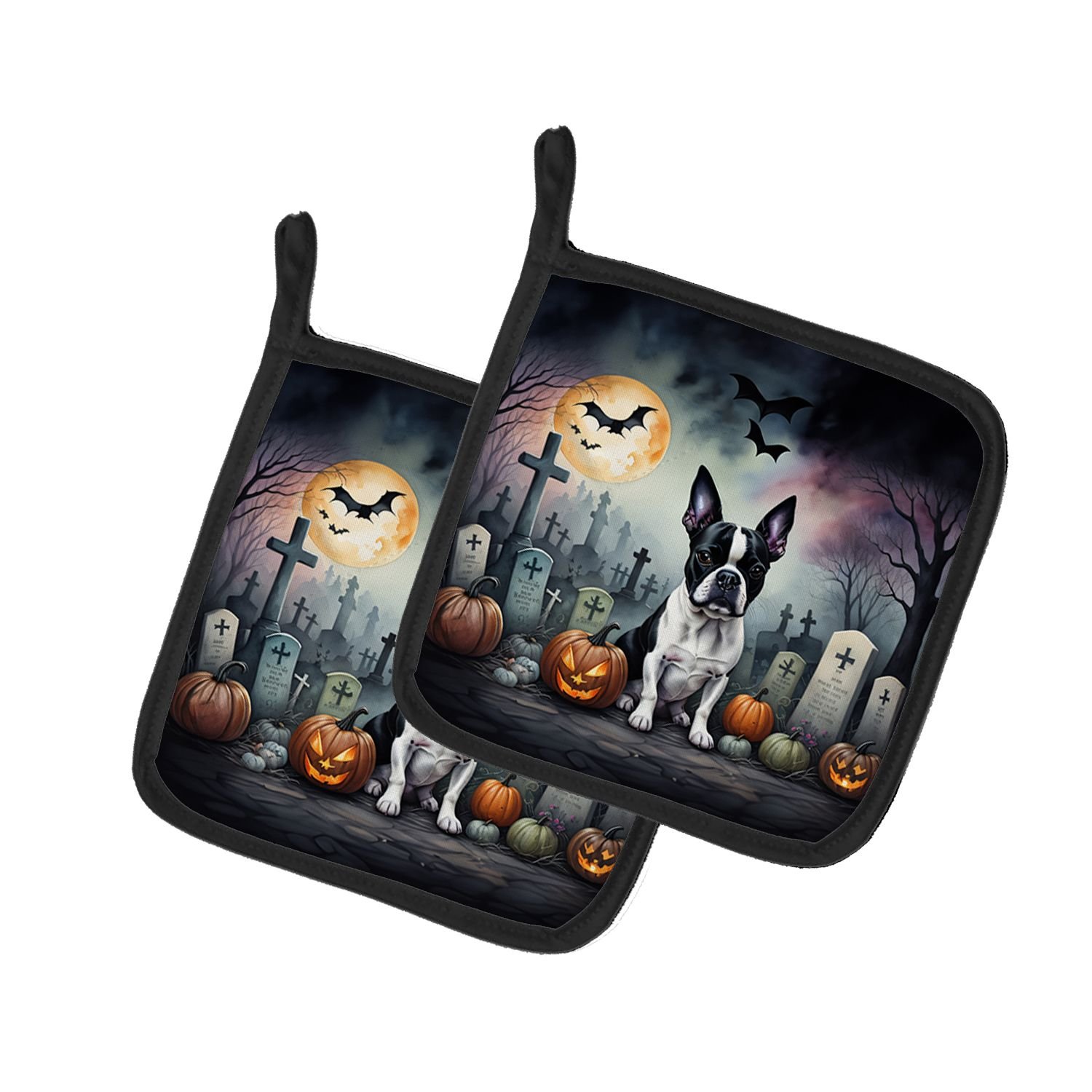 Home > Boston Terrier Spooky Halloween Pair of Pot Holders Kitchen Heat Resistant Pot Holders Sets Oven Hot Pads for Cooking Baking BBQ, 7 1/2 x 7 1/2