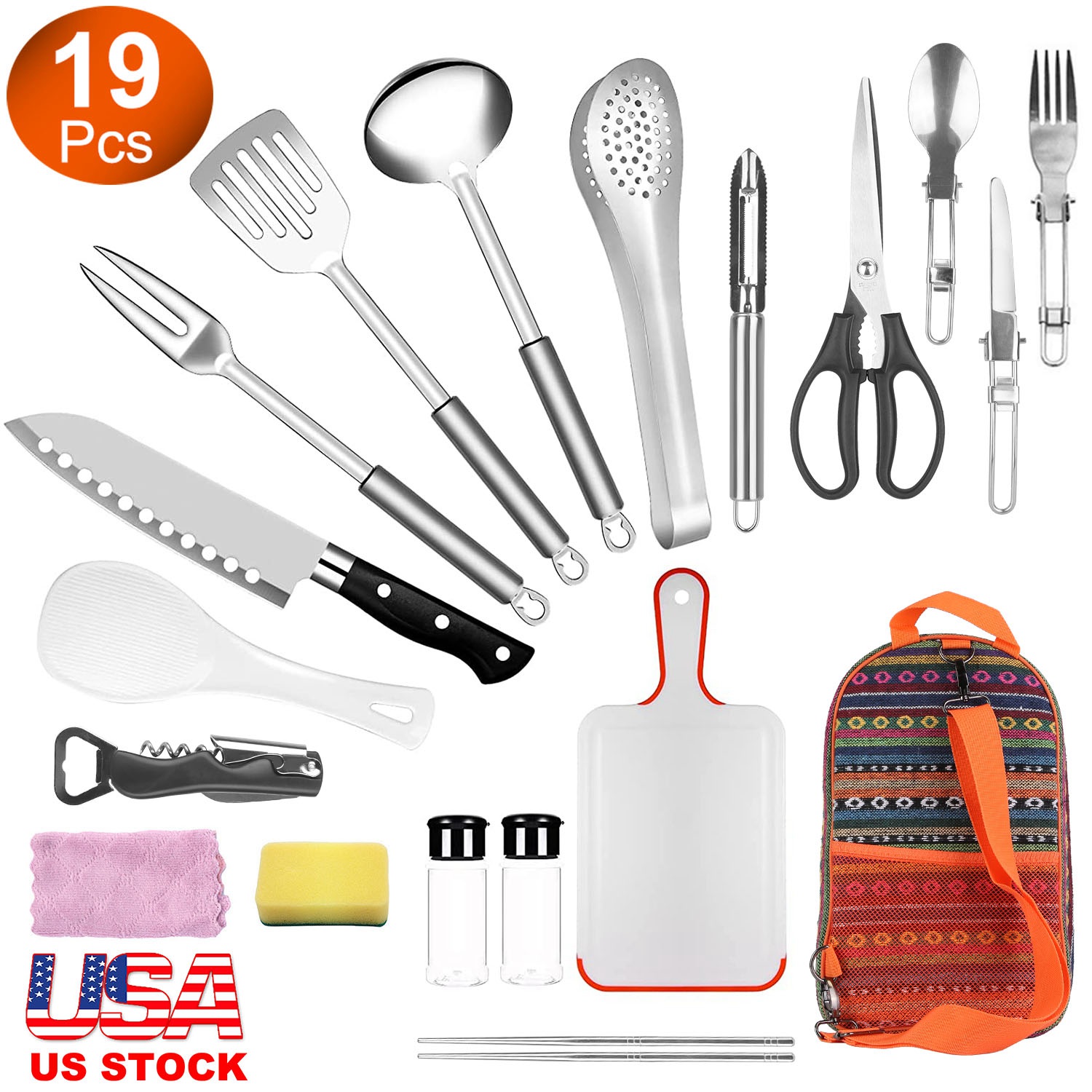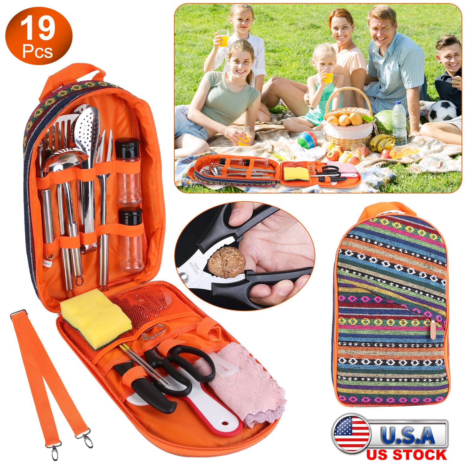 19Pcs Camping Cooking Utensil Kit Portable Picnic Cookware Outdoor Kitchen Equipment Gear Campfire Barbecue Appliances with Storage Bag