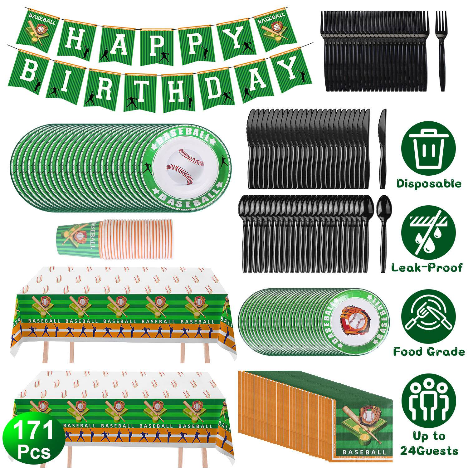 171Pcs Baseball Party Supplies Kit Baseball Birthday Party Disposable Dinnerware Set Baseball Themed Party Tableware Decorations Cups Plates Napkins S