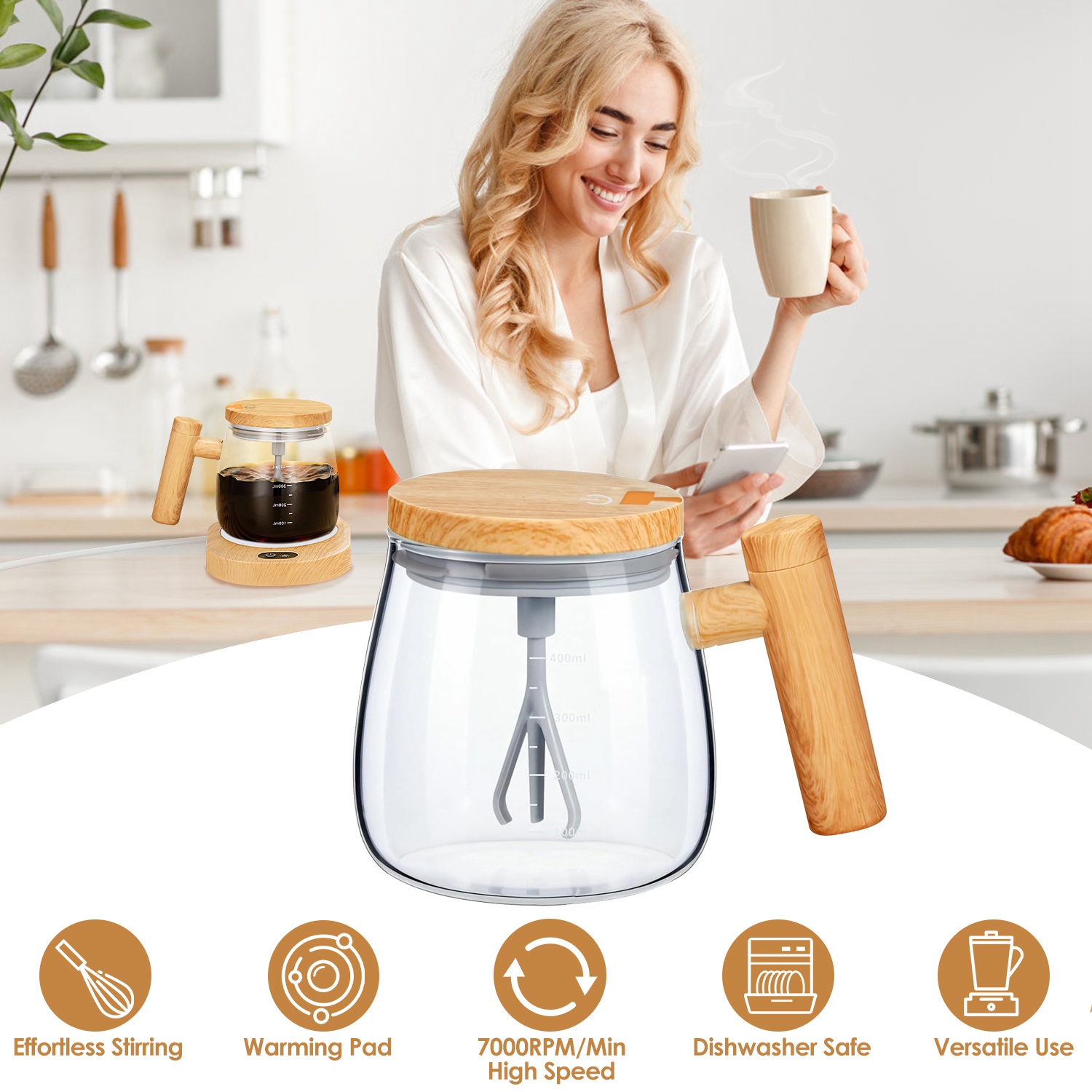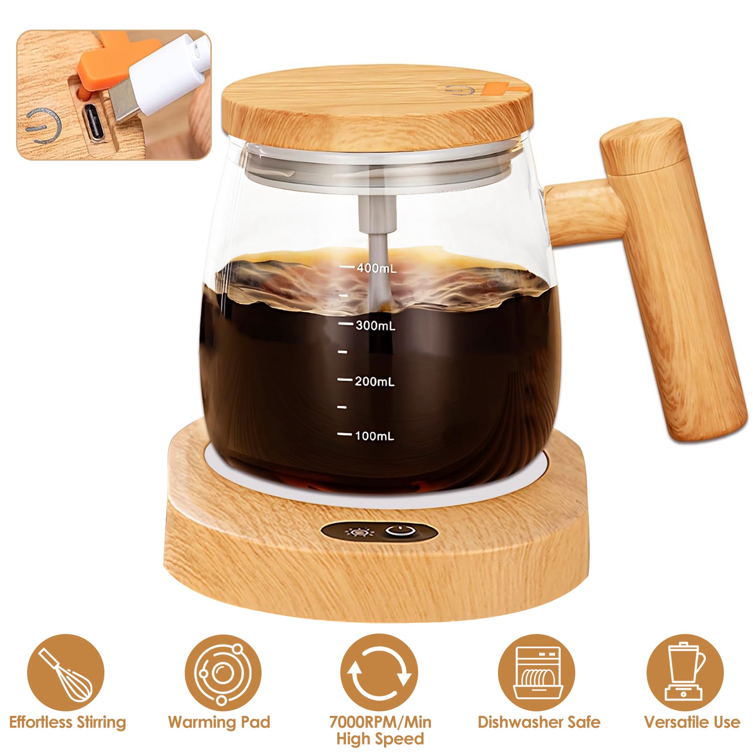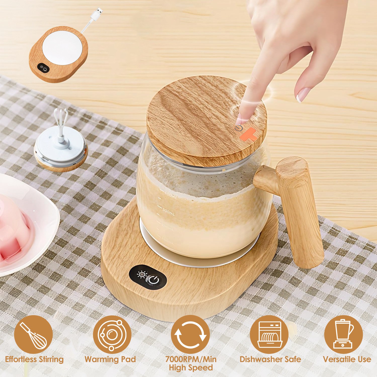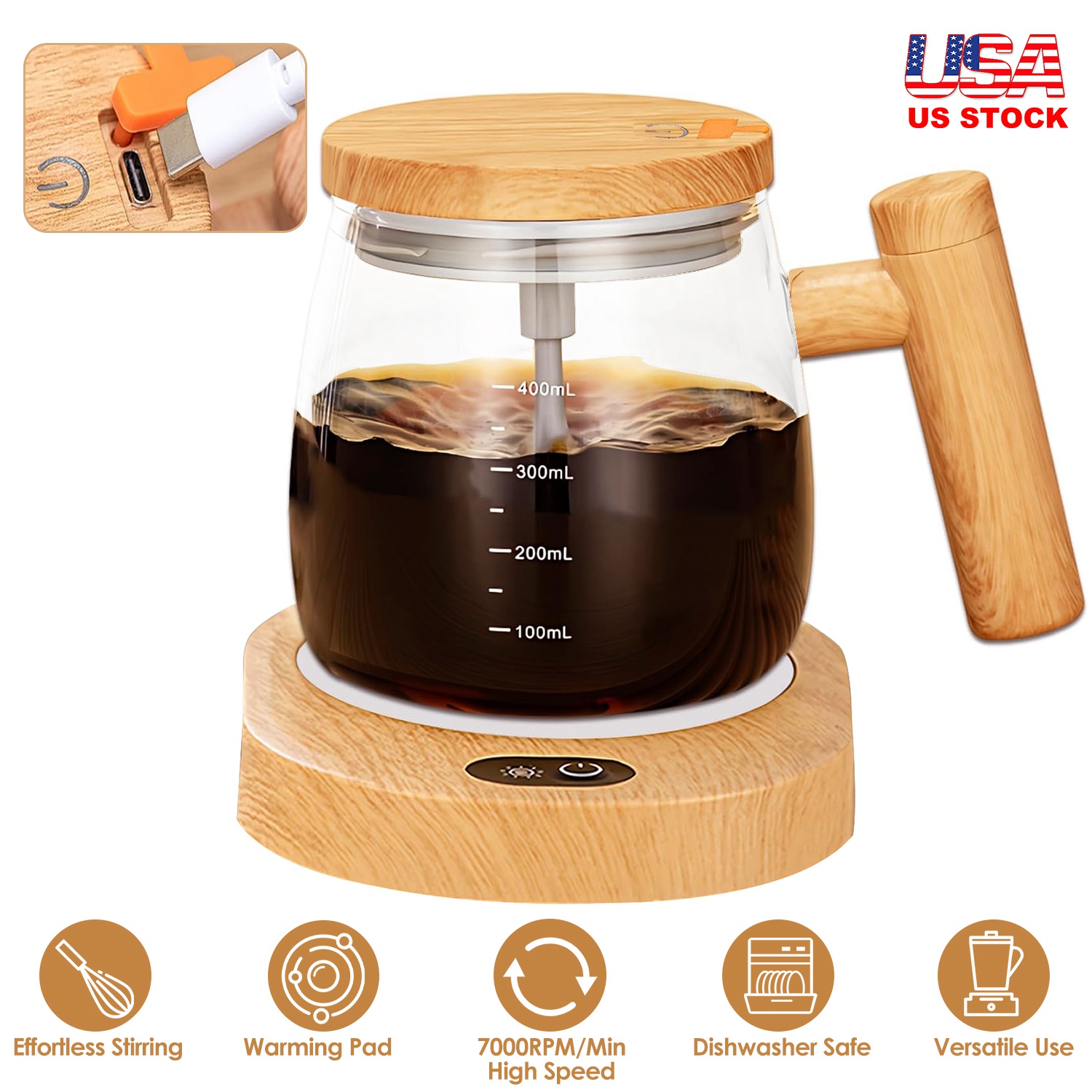 Are you tired of struggling to mix your morning coffee or oatmeal to perfection? Look no further than our self mixing mug! Featured with 7000rpm/min high speed, this electric mixing cup does all the stirring for you, such as stirring coffee, oatmeal, milk powder, black sesame paste, hot chocolate, protein powder, cocoa, juices, chia seeds, matcha etc.. Also suitable for whisking eggs. Come with a warming pad to keep the beverage at a desirable temperature, allowing for the enjoyment of warm drinks over an extended period. Made of high borosilicate glass, heat-resistant up to 302℉, dishwasher safe and healthy to use. Provide up to 90 minutes of continuous stirring after 1 hour’s charging, making it practical for everyday use. Don\'t settle for lumpy oatmeal or poorly mixed drinks. Upgrade to our self-stirring mug and experience the future of mixing!