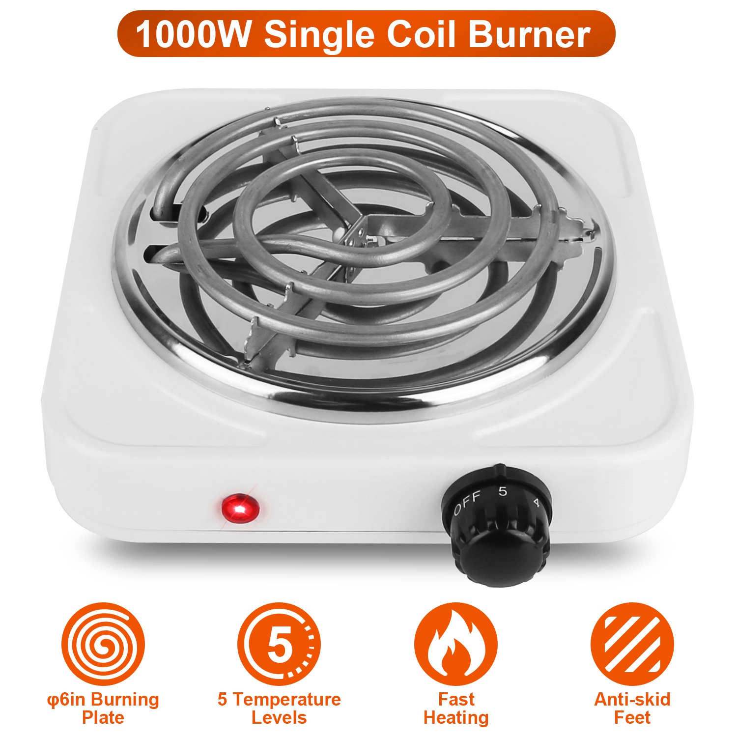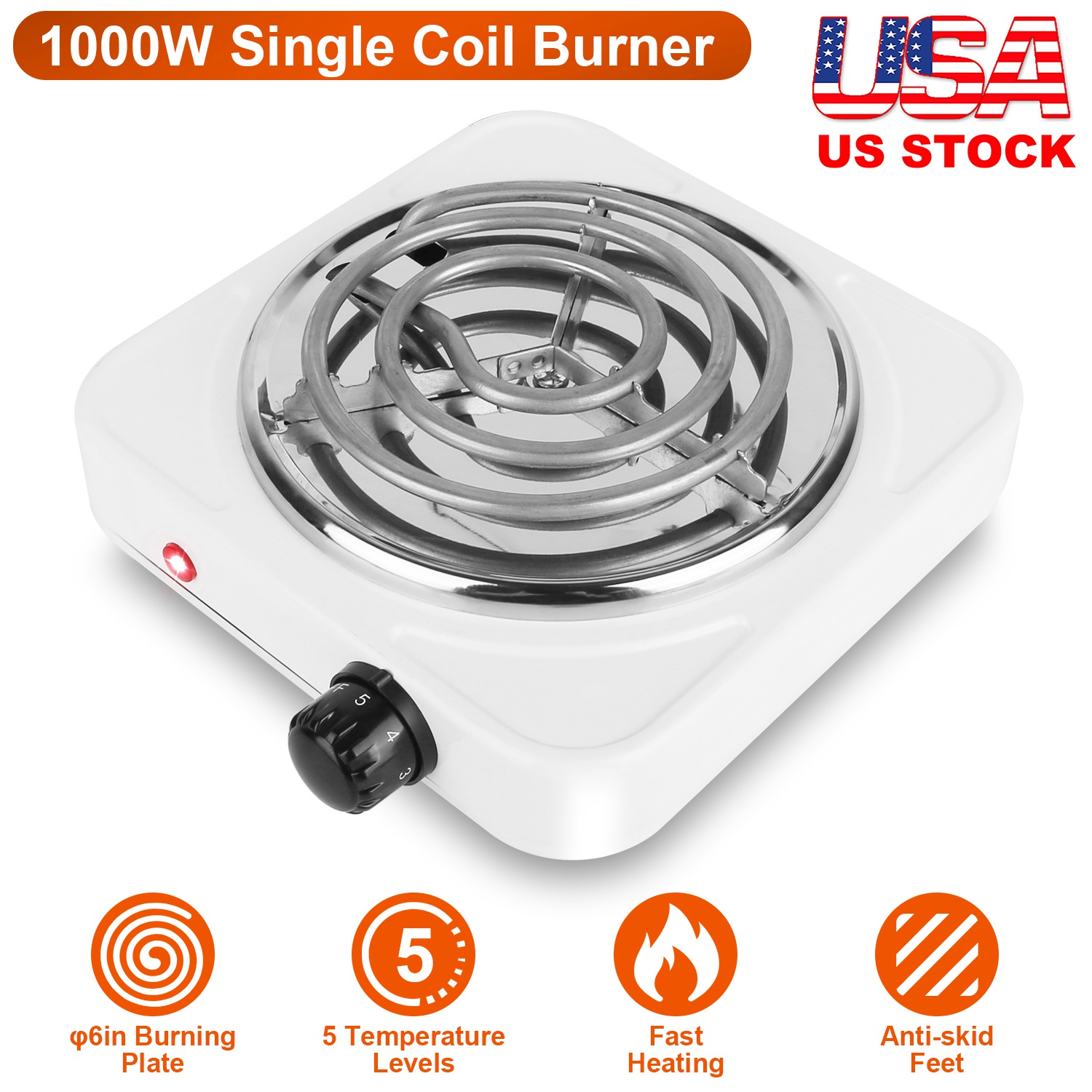 Home > 1000W Electric Single Burner Portable Coil Heating Hot Plate Stove Countertop RV Hotplate with Non Slip Rubber Feet 5 Temperature Adjustments
